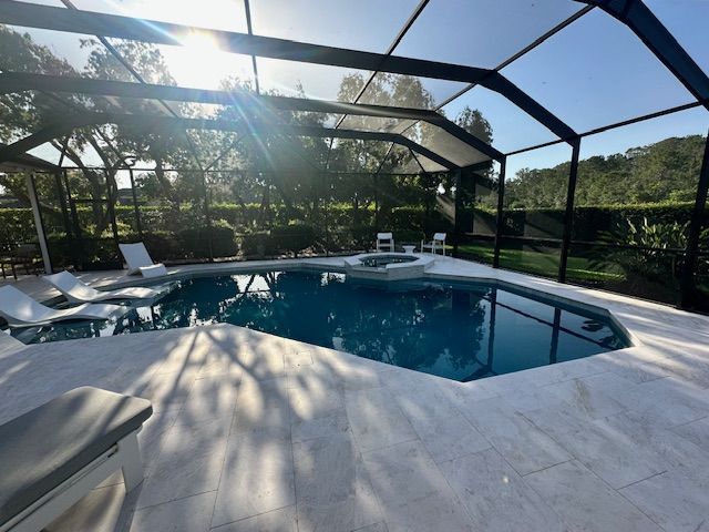 Marble pool decks instantly elevate any outdoor space with a clean, timeless look and a naturally cool surface underfoot. For this project, we installed a stunning pool deck and spa surround using Diana Royal Marble in a 16x24 pattern, creating a seamless and sophisticated design throughout. To enhance both function and visual appeal, we incorporated a matching deco drain that blends beautifully with the deck while improving drainage.